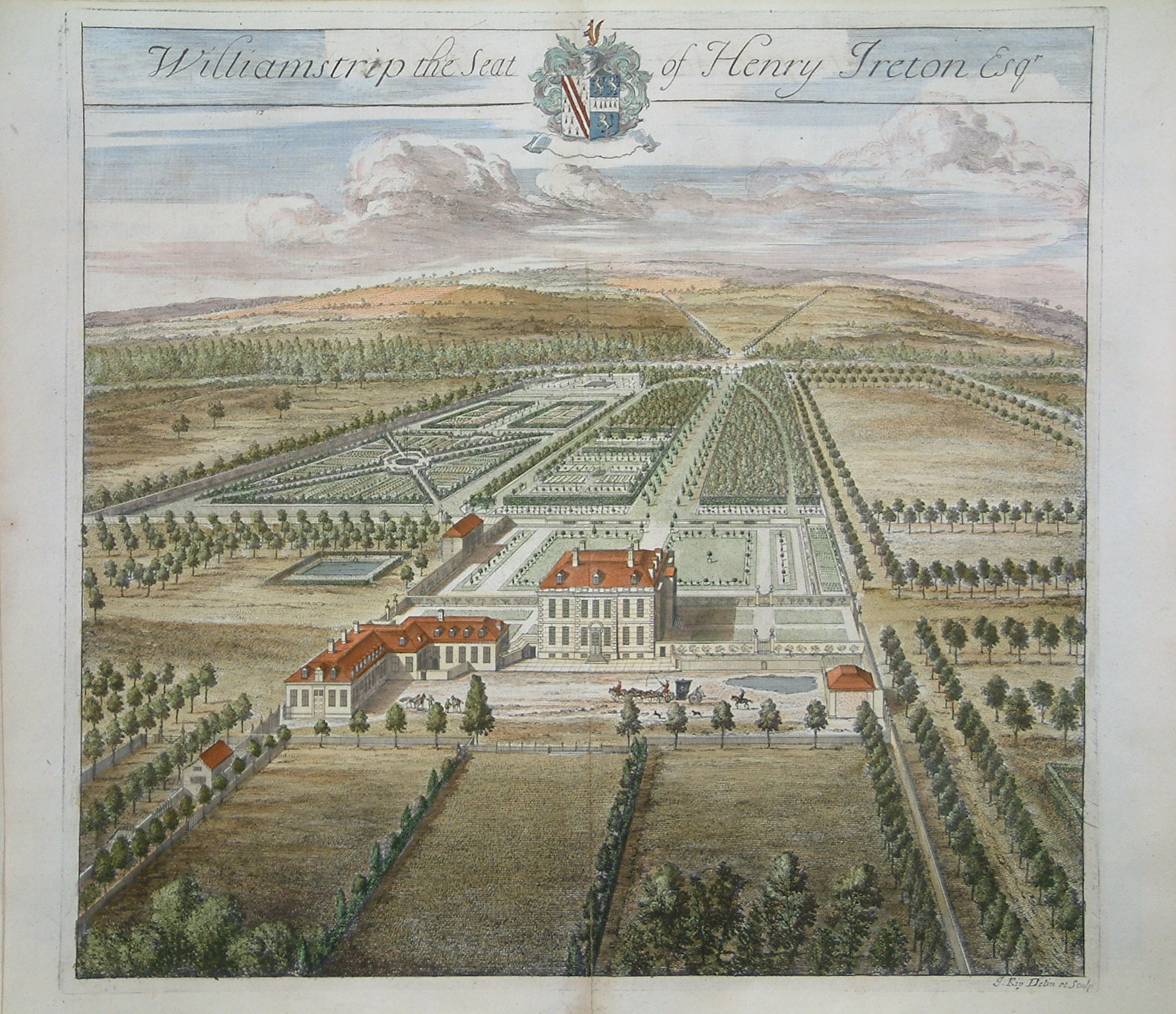 These classic engravings by Joannes Kip (1653-1722) illustrate Sir Robert Atkyns’ ‘Present State of Gloucestershire’ published in 1712. Atkyns (1647-1710) was a topographer and the son of the Chief Baron of the Exchequer. He was elected an MP for Gloucester in 1684. The superb birds-eye views are of country seats and estates and have become synonymous with the English country house. The book was published posthumously and nearly didn’t make it as many copies were destroyed in a fire at the printers in White Friars on 30 January 1712. Upcott (1968) I, p. 246.